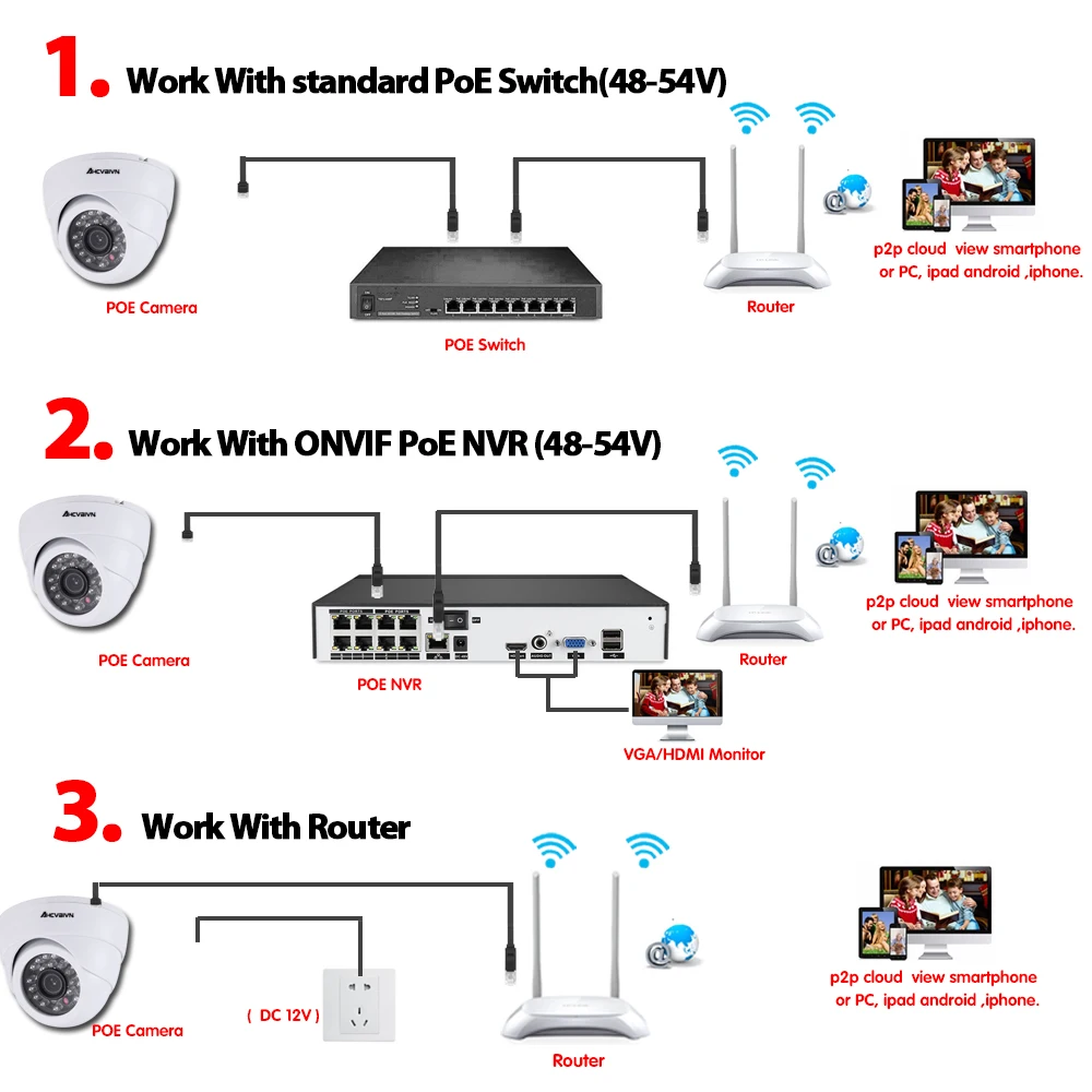 AHCVBIVN Security CCTV Camera in Survrillance System NVR 8CH Full HD 5MP Up to 16*5MP IP Camera POE 48V 802.3af Room/Oudoor Set