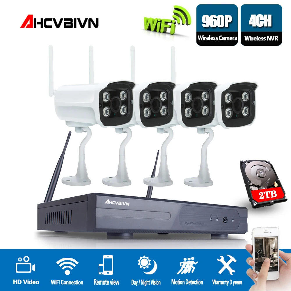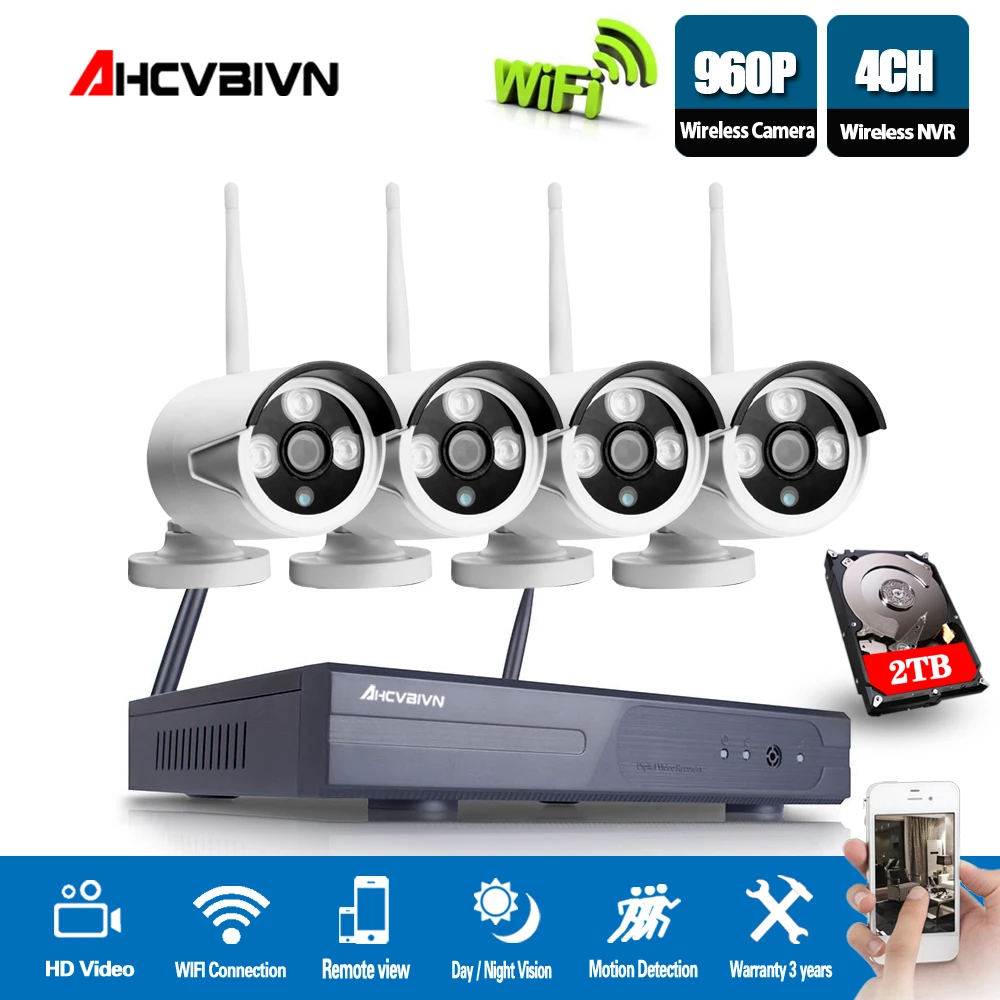 Good Chance for AHCVBI Security Camera System Wireless 4CH 960P NVR Kit HD Outdoor IP Camera CCTV System Night Visi