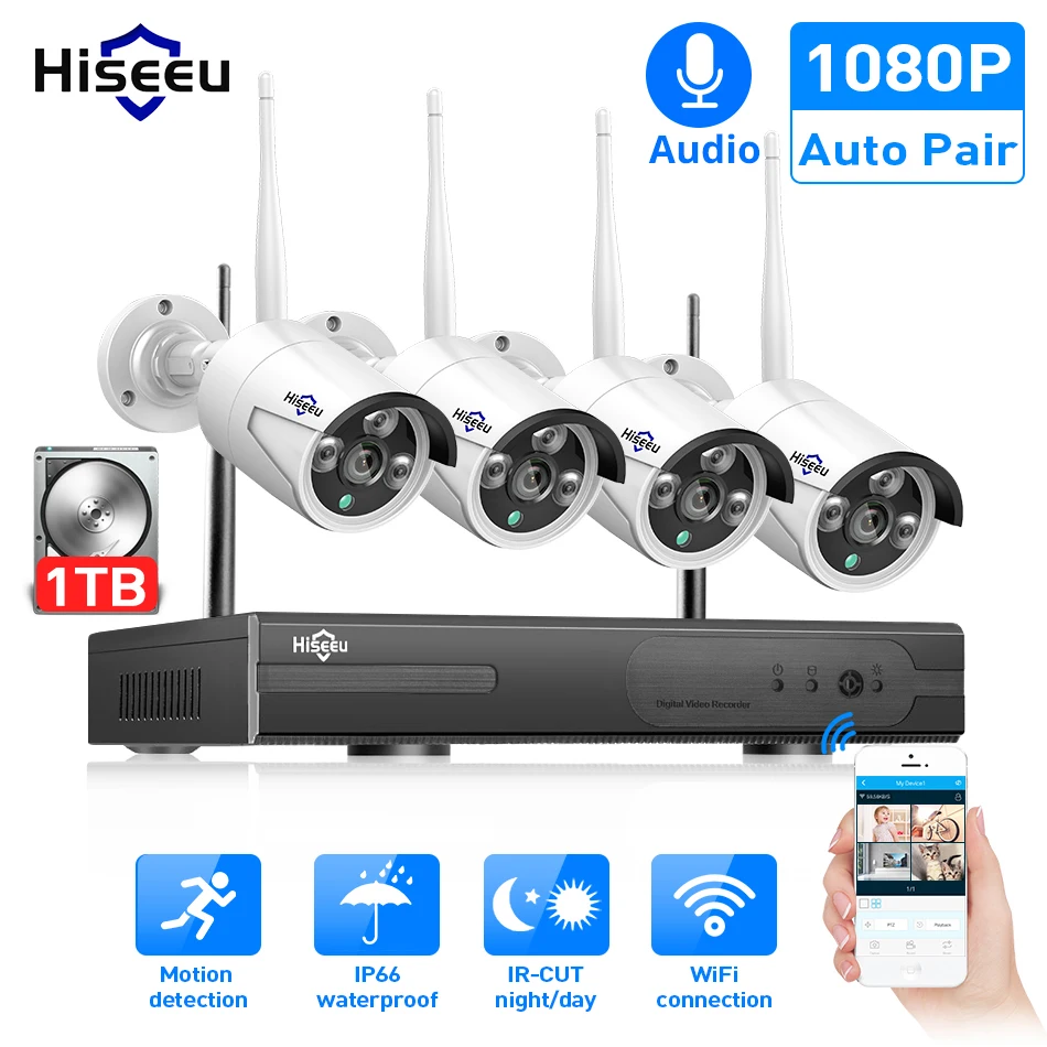 Best Price of Hiseeu 8CH Wireless CCTV System 1080P 1TB 4pcs 2MP NVR IP IR-CUT outdoor CCTV Camera IP Security Sy